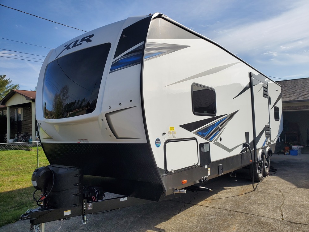 LOCATED IN Aurora, Ohio. Only 500 miles on the tires traveling from TN to Aurora, Ohio. Never took it out camping due to a back injury. My LIKE NEW 2022 XLR Hyperlite 2815 features a front queen bedroom with a walkaround bed and wardrobe cabinets. The bathroom has a sink with medicine cabinet, glass radius shower, and porcelain commode. The main living area provides 15' of garage space for your toys.