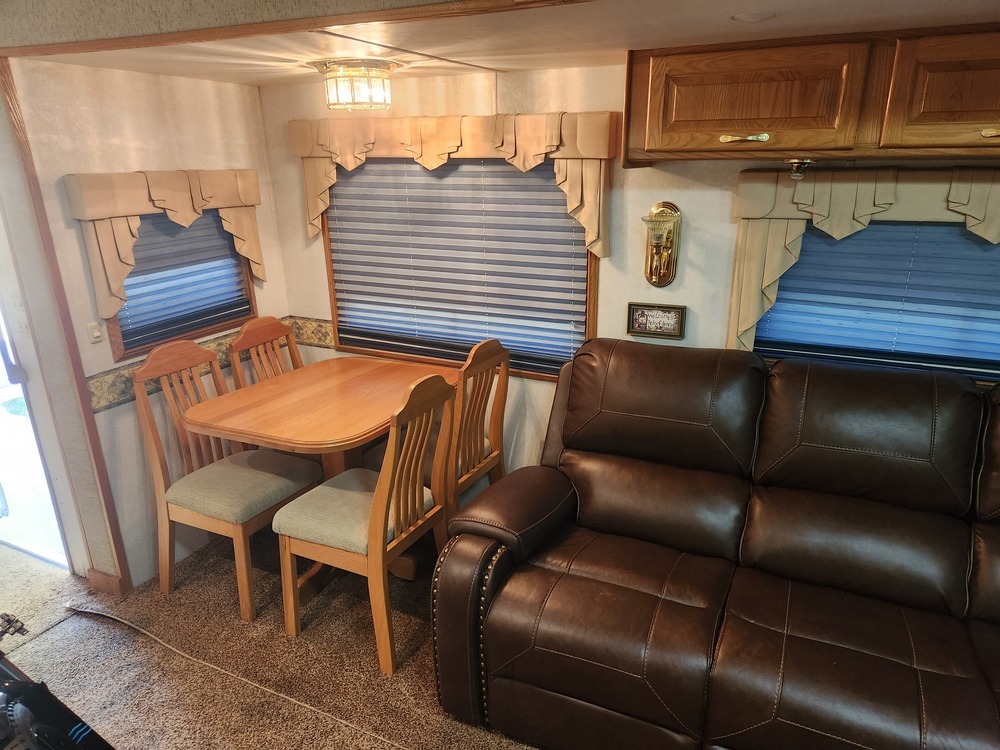 Whether you're hitting the open road or setting up camp at your favorite destination, the 2003 DRV Mobile Suites 36CK3 is sure to impress. With its combination of style, comfort, and durability, this fifth wheel trailer is a fantastic choice for anyone looking to elevate their travel experience. Don't miss out on the opportunity to own this exceptional RV and start making memories that will last a lifetime.Second owner extremely well cared for. Upgraded with auto level system, hydraulic disc brakes, 17.5 inch aluminum rims with 2 year old Continental tires, Morryde independent suspension, Electrical emergency management system. Batteries 1 year old, new seals on all slideouts 2 years ago, All slideout motors and gearboxes replaced last year, New residential carpet with pad 3 years ago, 55 inch tv. Full basement slide out tray. RV 500 cell phone signal booster ($600.00 upgrade)Pull out sleeper sofa, Full size leather recliner couch 1 year old. Unit professionally had fiberglass buff and restored last year. All graphics are painted. Nothing wrong with this camper and is ready to go camping as sits. Don't spend more for a less quality camper when you can get one of the best built fifth wheels out there at a fraction of the cost. More pictures available upon request.