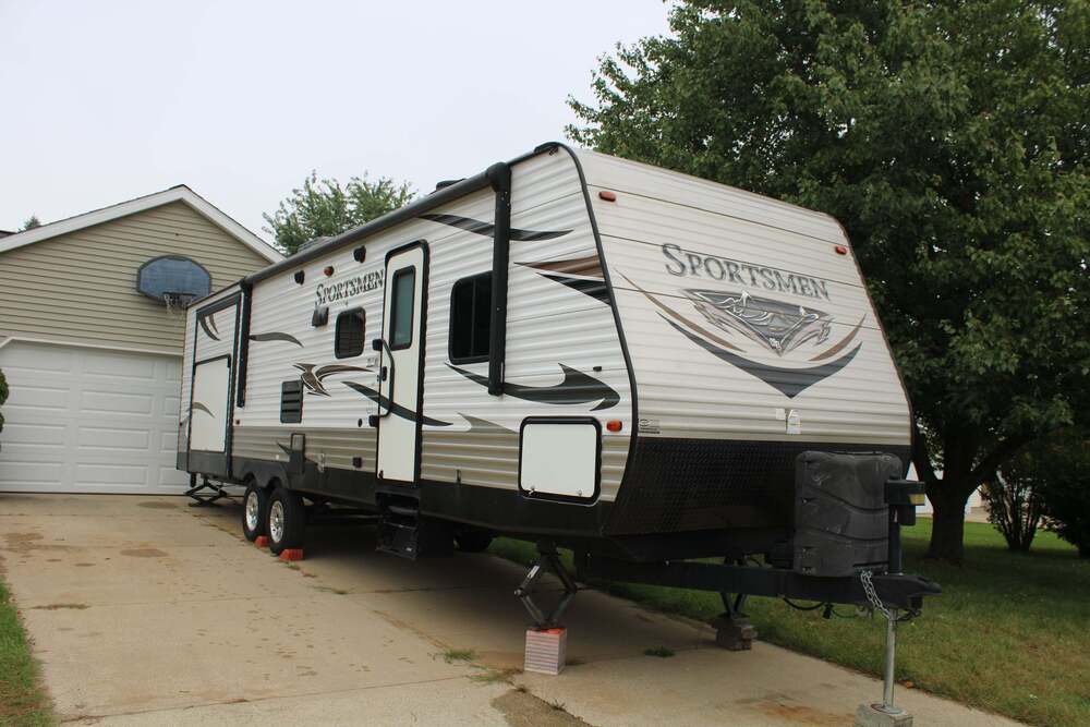 This 2017 K-Z SPORTSMEN S331BH has plenty of sleeping space with a queen bed in the front bedroom, opposing slide-outs in the bunk bedroom in the back (2 bunks with a trundle under the full bed), sofa bed and the U-shaped dinette that also folds down into a bed.
