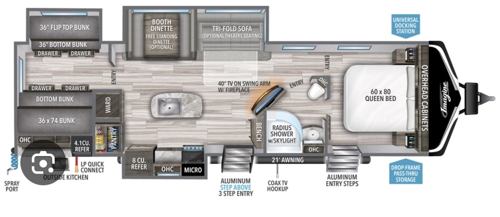 2023 Grand Design Imagine Travel-Trailer with two bedrooms, including 4-bed bunk cabin. Like new, barely driven. Equipped with off grid package that includes two lithium batteries and solar panels. $70k OBO, price negotiable.