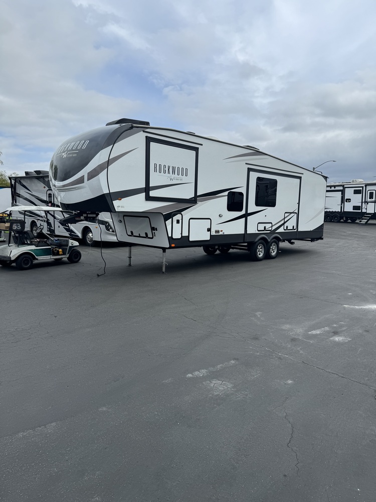 This fifth wheel can sleep your extended family and more! The rear bunk room is equipped with 3 total bunks allowing for ample sleeping arrangement. The sofa pulls out into a bed and the giant U shaped dinette offers even more sleeping spots! This awesome trailer also has 6 outside storage compartments and plenty of space to bring all the outdoor activities. Has 3 tv’s and washer and dryer hook ups. Comes with all cookware, dish-ware, flatware, jack bases, bigger house batteries. Full solar! brand new Brooklyn bedding and extra air condition in bed room. Fully loaded with over $8000 of extras. Must see. HITCH WEIGHT1,649 lb.UVW9,759 lb.CCC1,890 lb.EXTERIOR LENGTH36' 8"EXTERIOR HEIGHT13' 2"EXTERIOR WIDTH96"FRESH WATER54 gal.GRAY WATER92 gal.BLACK WATER53 gal.AWNING SIZE20'