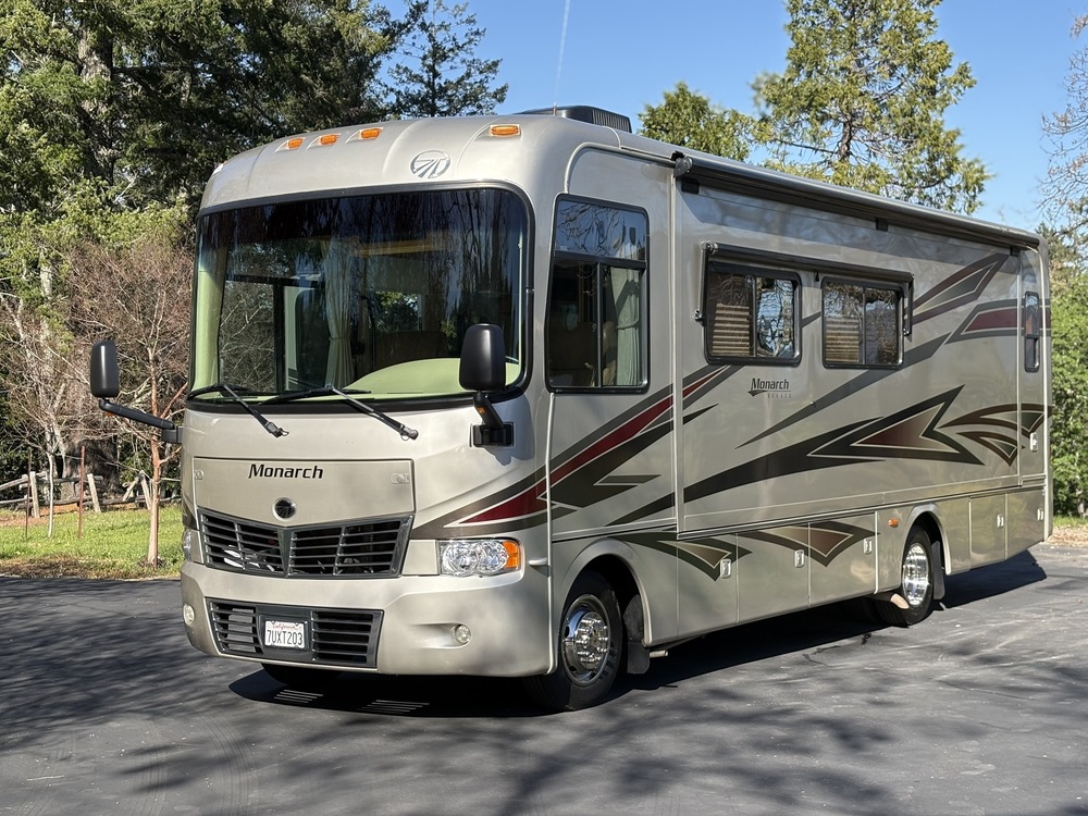Newer tires (front 2021, rear 2023), Onan gas generator 4000 watts (76 hours), all fabric awnings, 4 point leveling jacks, slide out awning and seal replaced, engine and transmission regularly serviced.