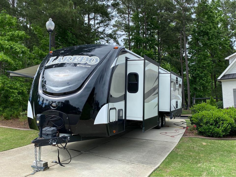 2016 Keystone Laredo 34 ft travel trailer. Great condition with three slide outs and an outdoor entertainment grill.