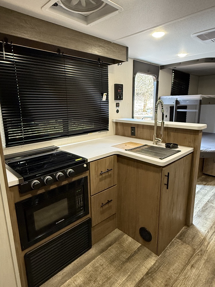 We bought this camper in September 2024. Weve used it for two short trips for three nights each. So its basically brand new. Features: master bedroom, two full bunks, table bed, large pantry, large TV, solar panel, instant hot water, Bluetooth speaker, outside Greystone Grill, outside refrigerator, electric awning, and slide out. We have added a protective topper over the slide out. Also added a spare tire with bracket. Clear title.