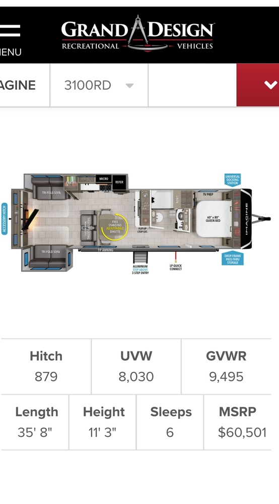 Selling our wonderful Imagine Travel Trailer- bought new, has served us well for many years on many trips- only reason for selling is we upgraded to a toy hauler (another Grand Design because we were so happy with our first one).