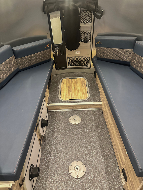 Construction• Body Material Aluminum• Sidewall Construction Aluminum• Wheels Composition Aluminum• Front and Rear Manual Leveling• Full Size Spare Tire Exterior Mounted• Rear Brake Type Electric DrumKitchen• Kitchen / Living Area Flooring Type Vinyl• Kitchen Table Configuration U-shaped Dinette• Kitchen Location Center• Number Of Stove Burners 2• Overhead Fan Yes• Refrigerator• Refrigerator Size Compact• Refrigerator Power Mode ElectricLiving Area• Living Area Location Rear• Max Sleeping Count 4• King Size Beds 1• Number Of Convertible / Sofa Beds 2