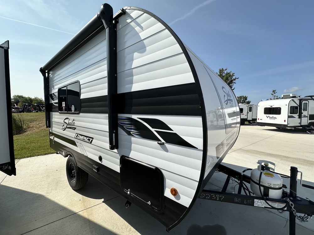 Shasta offers a wide variety of quality affordable lighter weight floorplans that are packed with convenience and value. Designed for couples and families to get away from it all and enjoy some well-deserved rest and relaxation. Shasta has been providing memories to campers for generations. Our well laid out interiors are bright and airy with modern woodgrain cabinetry, LED interior lights and residential styling countertops. You will absolutely love the large stainless steel residential refrigerator. You may want to add the optional free standing dinette with 4 chairs or LED fireplace to spark up your interior.