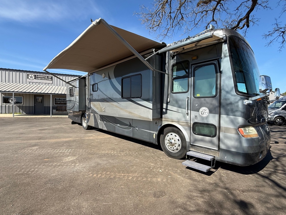 2006 Tiffin Phaeton with 4 slides, model 40QDH. This RV is 40' in length and features a powerful 350 HP Caterpillar diesel engine, Freightliner raised rail chassis, inverter, Allison 3000 6-speed automatic trans, 7.5KW Onan diesel generator, automatic leveling system..