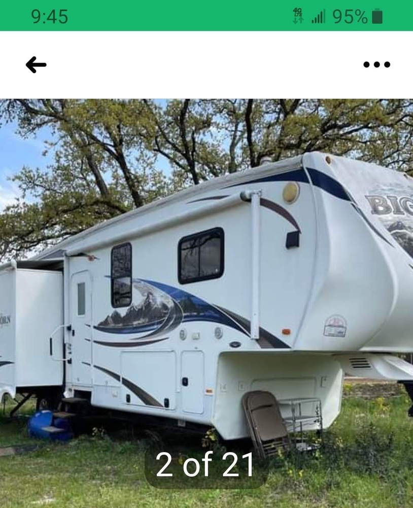Used 2012 HEARTLAND BIGHORN 3070RL ready to live in or travel. Wood laminate floors throughout. Many home details. Residential faucets with shutoffs. 13 cu. Refrigerator. 2 ac. Rv cover.