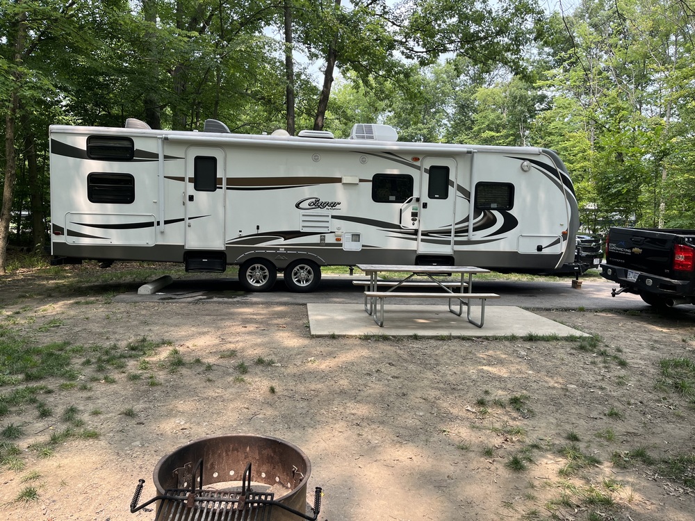 New tires-All vinyl flooring-New Custom made bunk beds/dining seats-Memory Foam Queen mattress-Extremely clean frame/protected roof coating-New water pump-Very light use-MUST SEE!