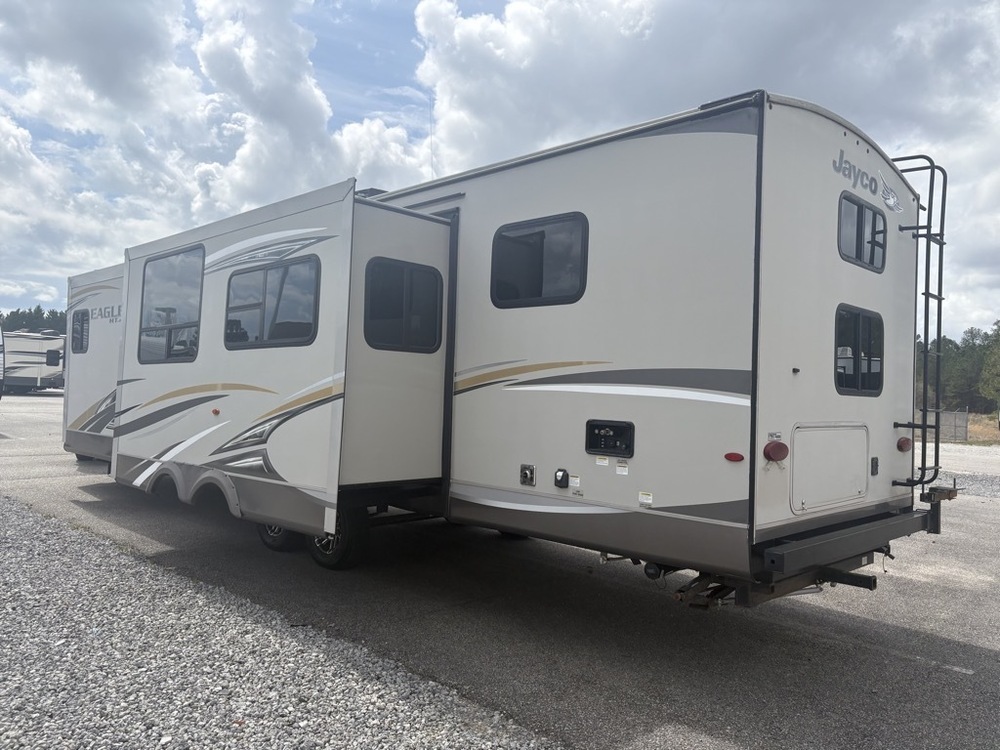 A 2017 jayco eagle 29dbok, 29ft, has rear corner bunks, currently sleeps 8, is missing the sleeper couch that would sleep 2 people, needs a new couch, has a outside kitchen and refrigerator, 2 slides, good condition for the year no smells or odors ,financing available through many lenders no dealer fees or hidden fees just the agreed price plus your taxes and tags, a lot of camper for the money don’t miss it call Chris with questions or to buy it now 336-428-7643 thanks won’t last weighs 8100 lbs 1/2 ton truck towable
