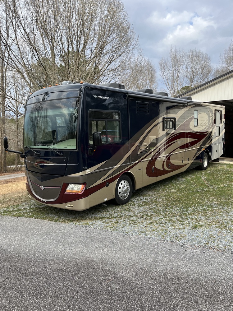 2010 Fleetwood Discovery G - the bunkhouse floorplan that comfortably sleeps 6 in 3 separated bedrooms each with access to a large private full bathroom. Always garaged and impeccably maintained. All major systems have been recently serviced - engine (annual service with oil, filter, chassis lube, fuel filters, water separator), generator (only 1700 hours with fresh oil and filter as well as new fuel filter), electrical system has 2 year old AGM batteries and new inverter. This RV has lived its life either in a fully enclosed garage or on a family trip and has never spent prolonged time outdoors or in a campground. The tires have 2 years left and show no signs of degradation. The interior is nearly perfect with no damage to the leather surfaces of the pullout sofa nor the captains chairs. This unit has a 2 year old residential fridge and a dinette with table and 4 chairs. Rated for 10,000 lbs. towing with an installed hitch and 7-way plug. Brand-new, 3 camera, full-color monitor providing high visibility to both sides and the rear of the coach at all times. Also, brand-new touch-screen audio system with Apple CarPlay capability. Built-in washer and dryer, central vacuum and an outdoor entertainment system (6 total TV's in this motorhome!).