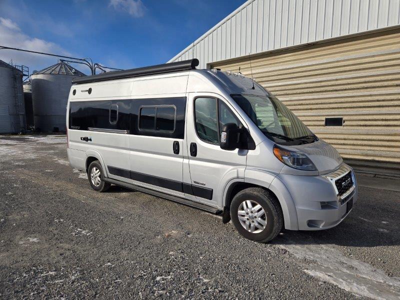 2020 Winnebago Travato 59G, 21’0”, No Slides, 3.6L V6, Ram ProMaster Chassis, 2,800 Watt Onan Gas Generator, 1,000 Watt Inverter, 215 Watt Solar Panel, PS, Dash Air, Cruise, Slide/Swivel/Recline Cab Seats w/ Ultraleather Cover, Power Mirrors w/ Defrost, Sliding/Pleated Front Window Cab Blinds, Radio/GPS Navigation w/ Satellite Radio/Bluetooth & USB Ports, Back-Up Camera, Front & Rear Sumo Springs, Stylized Aluminum Wheels, Aluminum Running Boards w/ Ground Effect Lighting & Pet Loop Attachment, Bike Rack, Movable Ladder, Luggage Rack, Side Screen Door, Rear Screen Door, Exterior Speaker System, Outside Shower, Coleman-Mach 10 NDQ Roof AC Unit w/ Bluetooth Control, Truma Combi Eco Plus Heating System w/ 2) 850 Watt Heating Elements, Macerator Pump, Monitor Panel, Blackout Cassette Shades, Deluxe Powered Ventilator Fan w/ Rain Cover, Gear Net, Anything Keeper Storage Baskets, Ram Tough Track Mounts, 24” HDTV, AM/FM/Bluetooth/CD/DVD, 2 Burner Stove, Microwave, Two Door Compressor Driven Fridge/Freezer 12 Volt, Sink, Table & Bench Seats w/ Flex Bed System, Wet Bath w/ Lavatory Cabinet & Shower, Double Bed w/ Deluxe Froli Sleep System, Sleeps 4, Power Patio Awning w/ LED Lighting & Bluetooth Control, Bleu Interior, Columbian Walnut Wood, Silver Exterior, 58,900 Miles