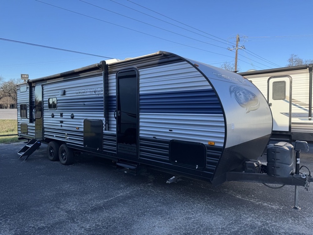I have a super clean 2022 Grey Wolf 27DBH this is a 33ft bunkhouse travel trailer with a super slide that weights 6,000lbs. It is fully equipped. It features, power front jack, outside kitchen, exterior speakers , rear cargo rack and a solar panel. Inside it features a 15k A/C , double over double bunks, a super slide with a couch and a dinette that both make beds , larger double door refrigerator, large rear bathroom and a private master bedroom up front. Everything works and financing is available.