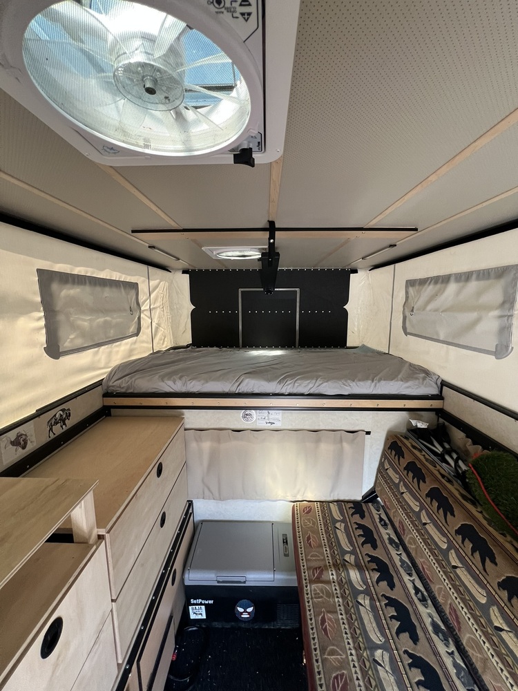 For Sale: 2023 Fleet with roll-over couch. Added my own cabinetry but can be easily removed to make room for your build. Has rear steps, flood lights, and extra fan above sleeping area. Really good condition as you can see. Nothing wrong with the Fleet unit, just looking to make a change in my camping experience.