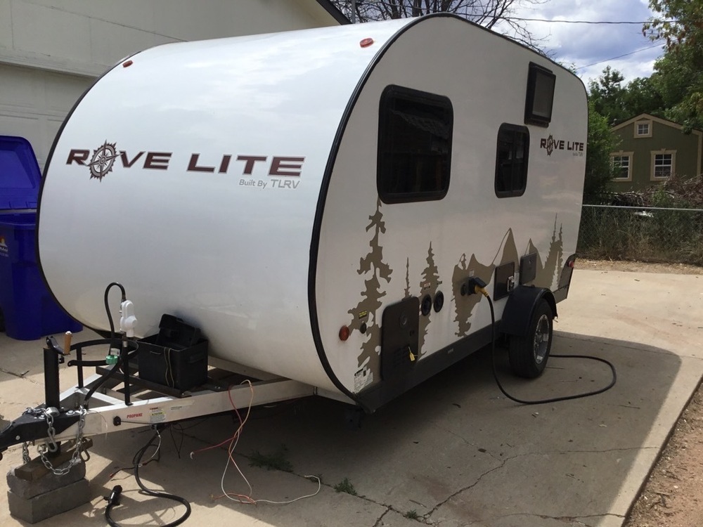 2023 RoveLite is in like new condition. Model 14FD. Salvage title due to minor damage on drivers side rear corner. Damage has been repaired. Power awning. On demand water heater. AC. Furnace. 1800#. Sleeps two. 14’ long. Pull with SUV or other average vehicle. We are a family owned RV dealer located in Colorado Springs since 1993. KC Auto Sales.