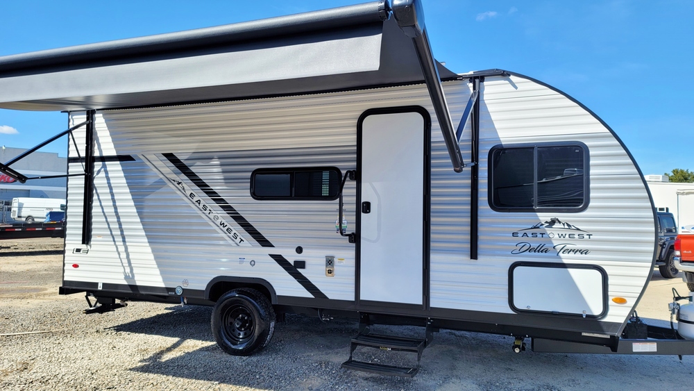 With any Della Terra LE travel trailer by EAST TO WEST, there is USA manufactured furniture, seamless countertops (no T-mold), and a 10.7 cu.ft. frost-free 12 volt refrigerator for your perishables. A Solera power awning with adjustable legs and LED light strip will also provide you with a great outdoor living area protected from both the sun and rain, and the outside hot/cold shower will let you easily wash off hiking gear or fill the dogs water bowl. These trailers also include Furrion back up camera prep, On The Go ladder prep, and slide out awning prep that will allow you to add these features to make your camping experience easier than ever. An optional power tongue jack can also be chosen for easy towing, as well as the optional Solar Package to enjoy some off-grid capabilities!