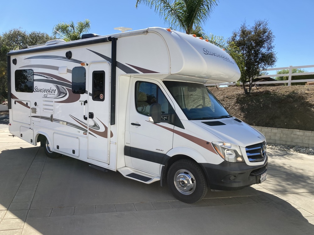 Very nice 2016 (24'8") Forest River Sunseeker MBS 2400S. This motorhome is on a Mercedes Benz chassis with a V6 (188HP) Diesel Engine that has 54,000 miles. It sleeps 4 and comes with the over the cab entertainment option with TV in place of a bed. On-board Cummins/Onan LP 3600 generator with 14.7 hours. 2000 watts pure sign wave inverter with 1-solar panel for charging the batteries. All tires are in new condition. Lots of options not listed seen in the pictures attached. This RV is in great condition and is the perfect size for all RV locations.