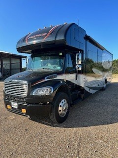 This rig was bought to haul a 28' race car "stacker" trailer to tracks and spend 4-5 days with no RV hook ups. Is equally proficient at an RV park. Quite nimble in a tight environment, especially when backing. Legitimately sleeps 6 with 'Queen' over-cab bunk. Basically a condo on wheels that hauls in comfort.