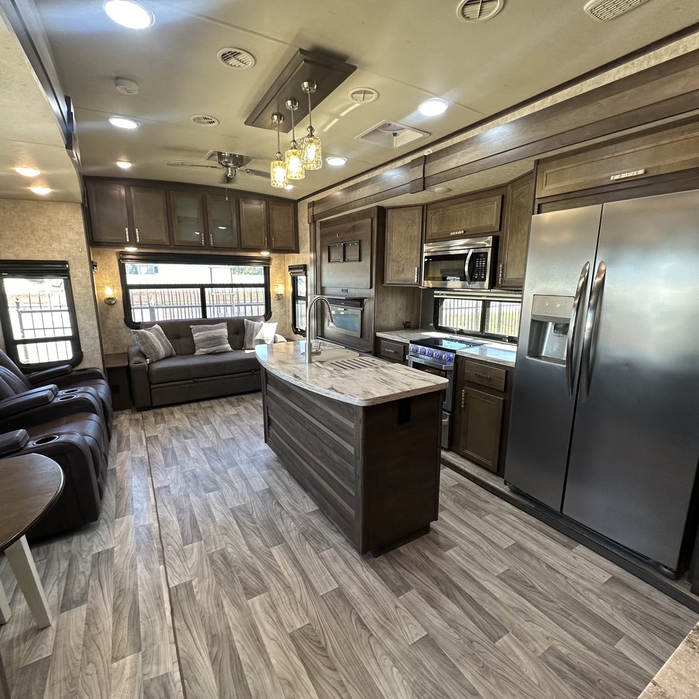 It's time to vacation in style and luxury in this Open Range 3X fifth wheel by Highland Ridge. Model 3X384RLS offers a unique front wall bench in the master bedroom. This area can become your reading nook or home office, or even a space to enjoy your morning coffee. The master Bedroom also includes a second Fireplace! The convenient dual entry bath allows access from the bedroom or hallway. The main living area includes dual opposing slide outs creating more walking around room, Recliners, and a kitchen island offers additional prep and serving counter space. There is more to see and want on every trip in this Open Range 3X model.