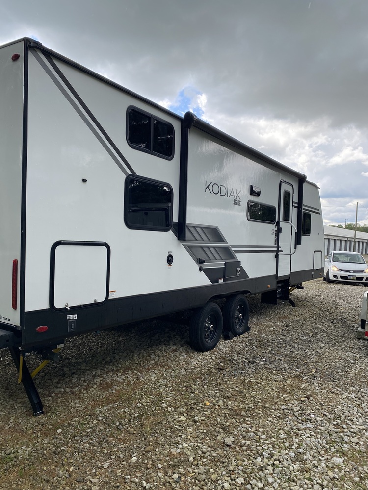 Only camped in 11 nights like new still has sticker on stovetop, comes with sway bars , ,hitch ,grill,and all hoses and things needed to camp