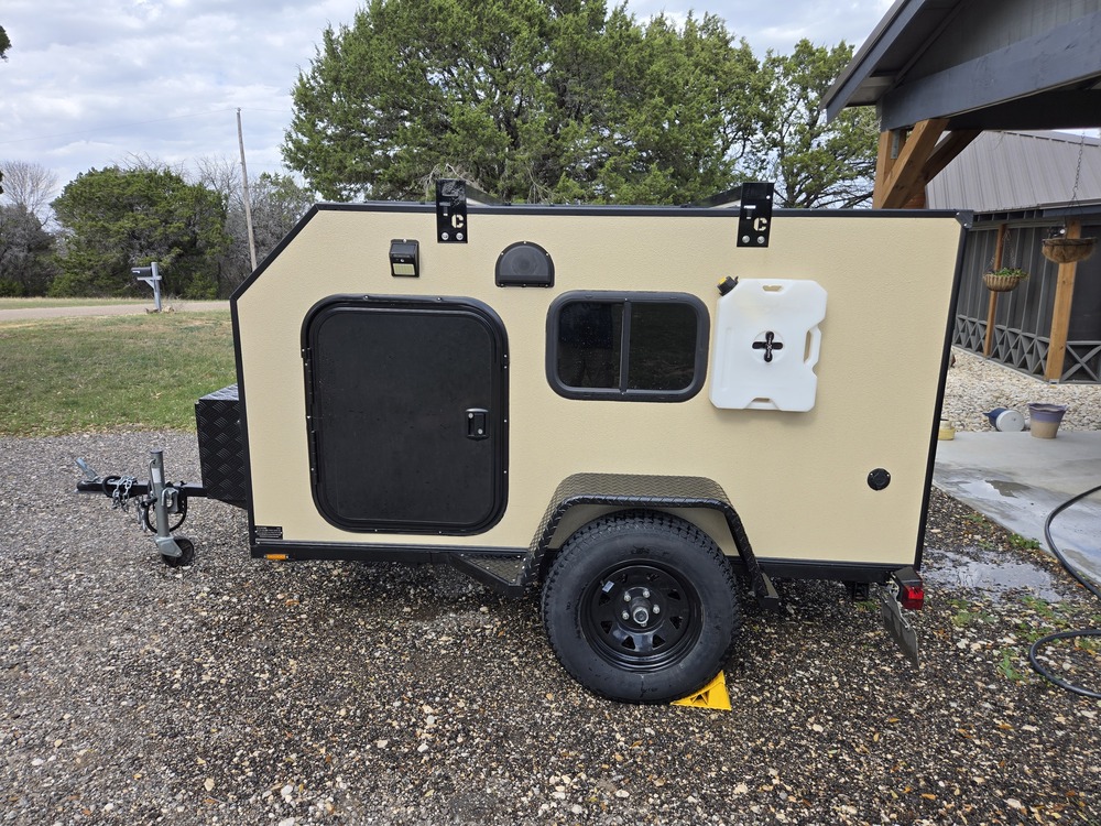 Start your adventure!! This little beauty is a head turner!! Excellent condition tough rhino exterior, marine grade interior flooring, sleeps two, 12 volt for off grid, shore power, a/c, galley in back, new wheel bearings, rear stabilizers, 10x8 canopy, solar exterior lights, rear hitch, 500 lb capacity luggage rack, 1,100 lbs dry weight easily towed by most vehicles. Camper is located near Lake Whitney, Texas.