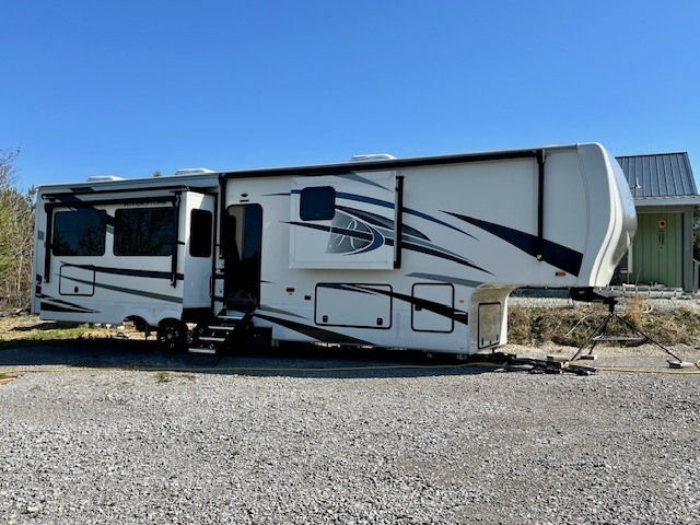 The 2023 Forest River Riverstone 39RKFB is a luxurious and spacious fifth wheel trailer designed for those who enjoy the comforts of home while on the road. With only 600 miles on the odometer, this virtually brand new RV is ready to take you on your next adventure.