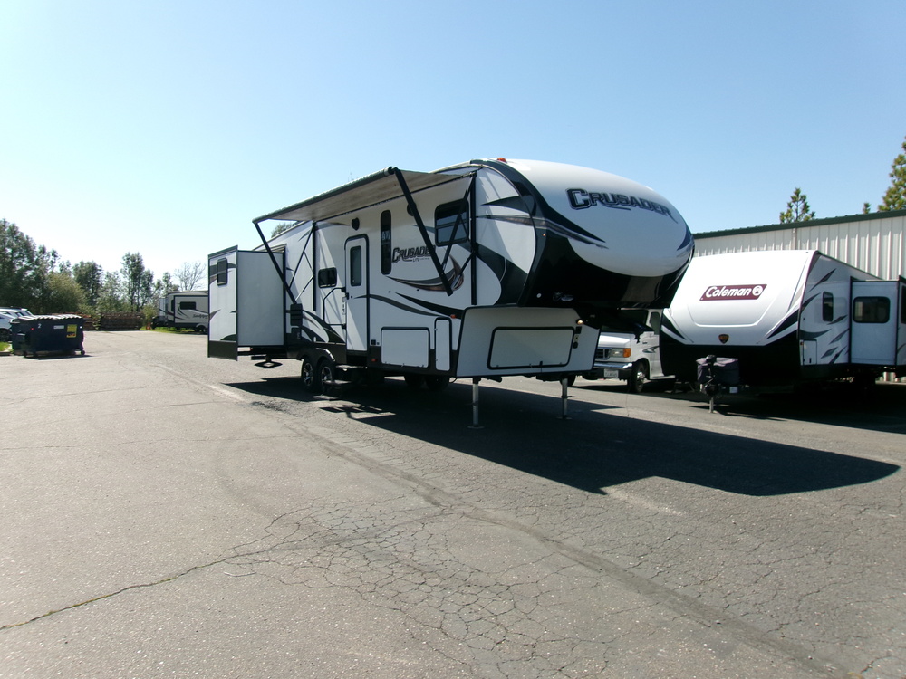 THIS 2018 FOREST RIVER CRUSADER LITE 30BH 5TH WHEEL WITH 2 BEDROOMS AND 1 1/2 BATHROOMS IS IN GOOD CONDITION!! THE CRUSADER HAS A VERY SPACIOUS FLOOR PLAN WITH 2 SLIDES. IT IS ALSO EQUIPPED WITH THE BUNK ROOM THAT SLEEPS 3 WITH A HALF BATHROOM, ON DEMAND HOT WATER HEATER, DINNING BOOTH, SOFA BED, SLEEPS 9, WALK AROUND QUEEN BED, OUTDOOR SPEAKERS, ELECTRIC AWNING, BACKUP CAMERA READY, AND SO MUCH MORE!! IF YOU HAVE ANY QUESTIONS OR WOULD LIKE TO SEE THE TRAILER PLEASE CONTACT SCOTT AT 916-225-6218 DEALER #45205. THANK YOU.