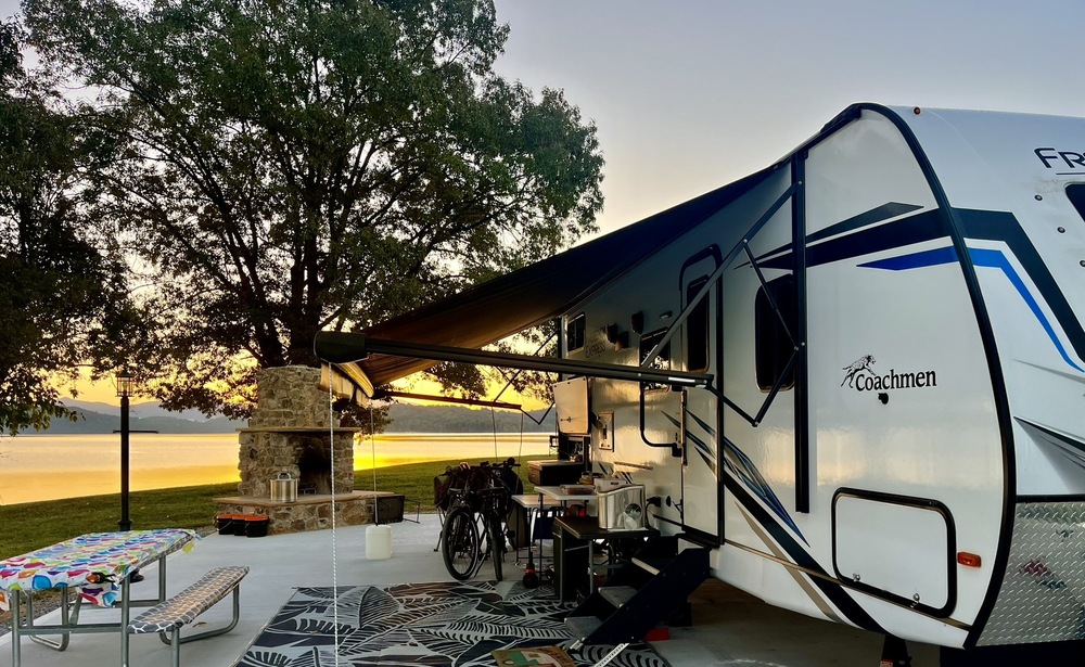 Added storage box behind LP tanks for hitch storage and necessary blocks for camp site setup. Excellent condition.