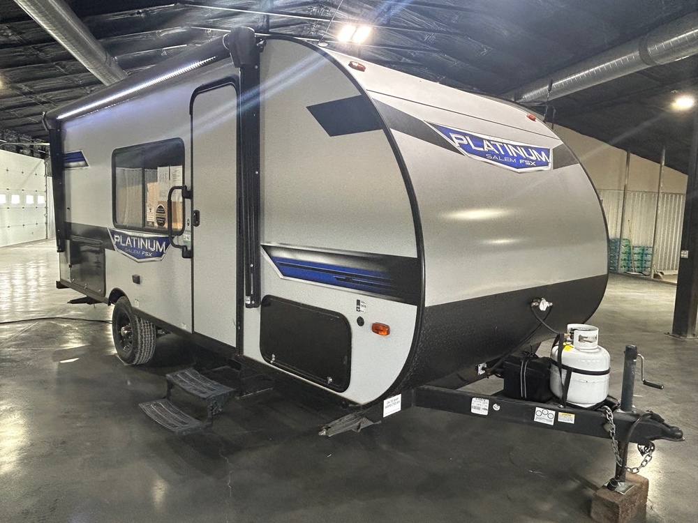 Step inside, and you'll be greeted by an intelligently designed interior that maximizes space and convenience. The clever layout includes a versatile dinette that converts easily to a sleeping area, perfect for accommodating additional guests or providing more room for the family. The Salem 179DBKX doesn't just cater to your sleeping needs; it also boasts a fully-equipped kitchenette, complete with modern appliances and ample storage, allowing you to prepare and enjoy meals on the go. The blend of premium materials and stylish finishes throughout the trailer underscores Forest River's commitment to quality and comfort.