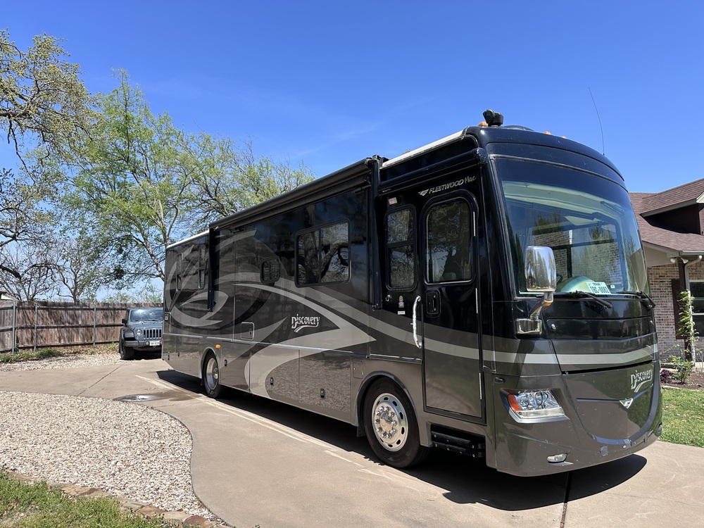 The 2008 Fleetwood Discovery 35H 68,100 miles. Length 35 feet, 350HP Cummins I6, Allison 3000 6 speed transmission. 3 slides, sleeper sofa, automatic leveling system, SuperSteer Safe-T-Plus steering upgrade, Trailer brake. Newer tires, captains chairs, interior, Onan 8000 generator (367 hrs). Motorhome in great condition with some minor clear coat issues in a couple of spots on the black paint. Text inquiries to 805 720 8192.