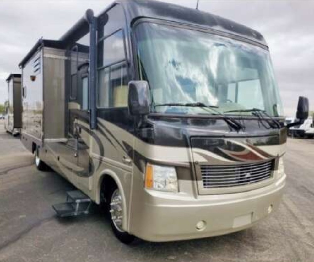 BRAND NEW FRONT TIRES (Michelin) BACK TIRES NEWER , EXCELLENT CONDITION (TOYO) Top of the of the leather furniture and brand new carpet throughout,(16,000) manufacturer(Brad and Hall) captain chairs, dinette table and couch ( pulls out to a queen bed) , New chair and ottoman,