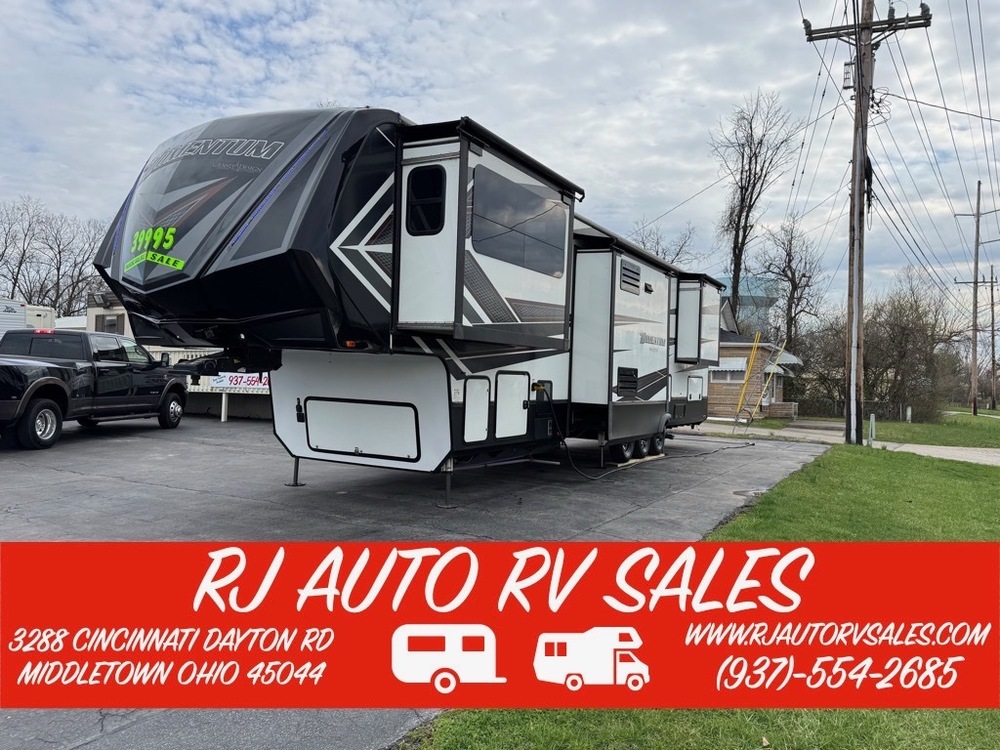 HERE AT RJ AUTO RV SALES WE HAVE A 2018 GRAND DESIGN MOMENTUM 376TH TOY HAULER FIFTH WHEEL