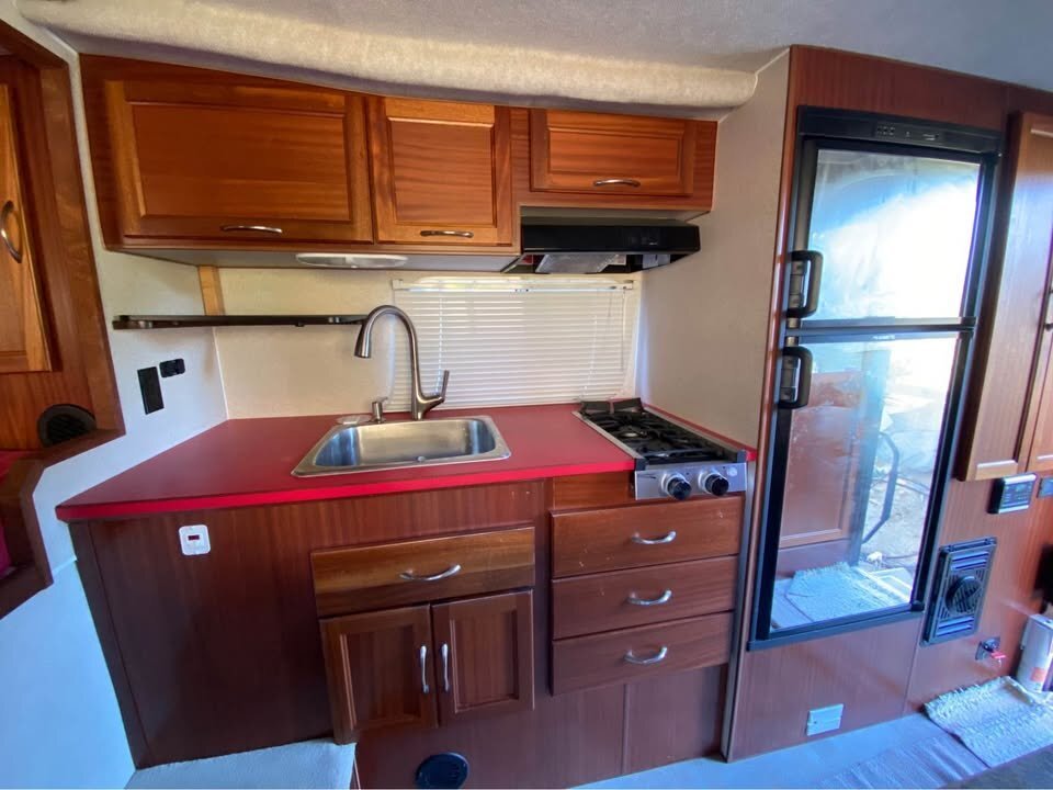 The factory oven eats up valuable storage spaceand lets be honest, RV ranges underperform. I redesigned the kitchen layout to added big deep drawer space for extra food storage and tripled the counter space for meal prep, including a smart sink cover holding place, so you have more cabinet and serving area, as well as a place to put the sink cover--really kinda genius (my wife said that).