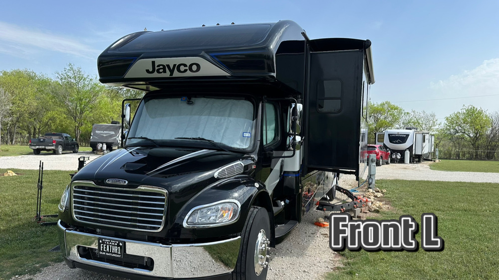 2022 JAYCO SENECA. Black,White and Blue trim. 37M floor plan (PDF copy of floor plan and detail brochure info available on request). Owners have been living in it since purchase in March of 2022. 25,954 total miles. Transferable extended warranty has two remaining years. 360 HP diesel engine. Upgrade 3,000 watt inverter charger installed. Upgrade six 100 amp hr lithium battery bank. Upgrade Thomas Paine electric theater seats. 8,000 watt Onan generator. Two a/c units. Dometic Furnace. Furrion electric fireplace. Microwave. Induction cooktop. Demand water heater installed. King size bed. Sleeping loft above cab. TVs in the bedroom and living area. Residential refrigerator. Back up and side view cameras.