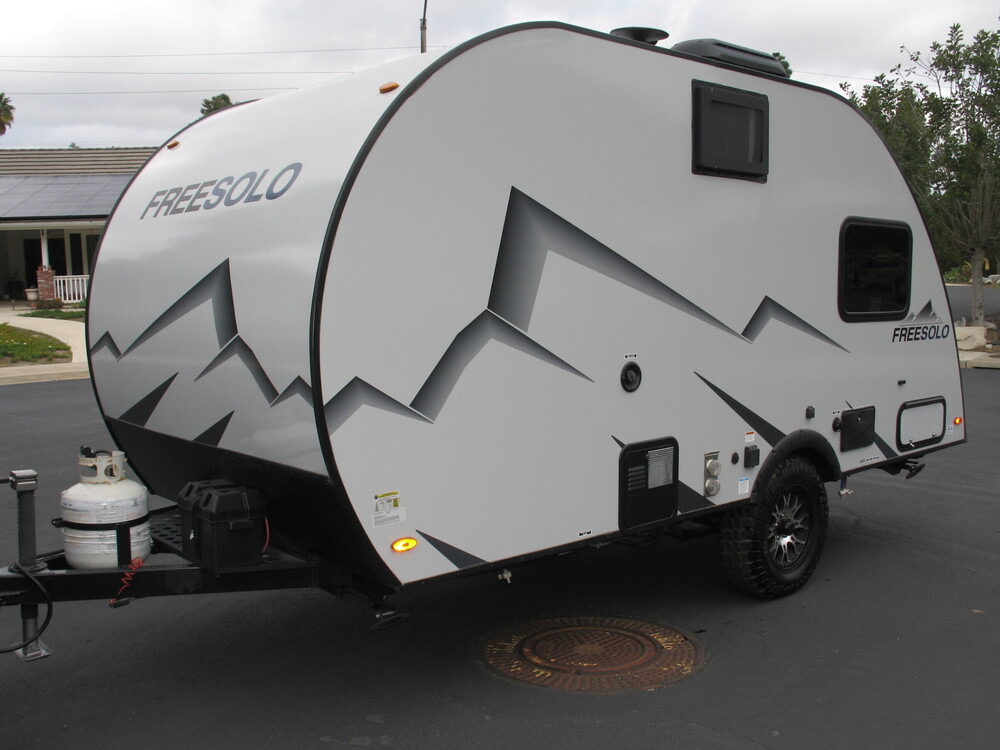 Everything works, no damage. Outside shower, four stabilizers, 12V refrigerator. New battery, full tank of propane and ready for camping.