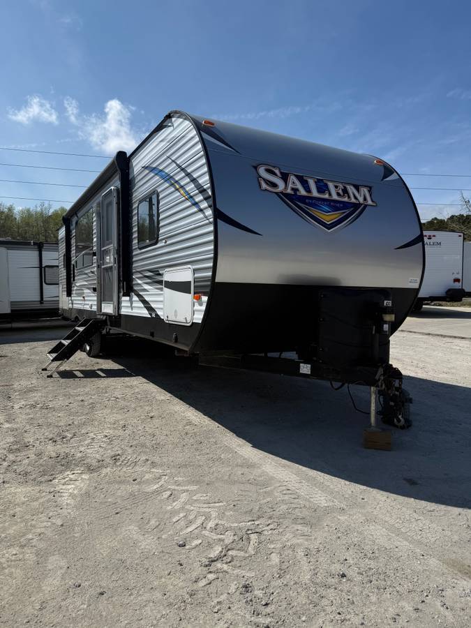 Plan to make plenty of memories with your family when you choose to camp in a Forest River Salem travel trailer! Along the exterior you will find features such as a full walk on one-piece Superflex roof and a vinyl patio awning. The kitchens are sure to draw your attention with the Dometic double door refrigerator, large dinette picture window, Beauflor one-piece plank wood linoleum flooring, plus abundant cabinet storage. In the bedrooms you will find bedside mirrored wardrobes with a shelf above, and a strut lifted storage area under the bed. Why wait?