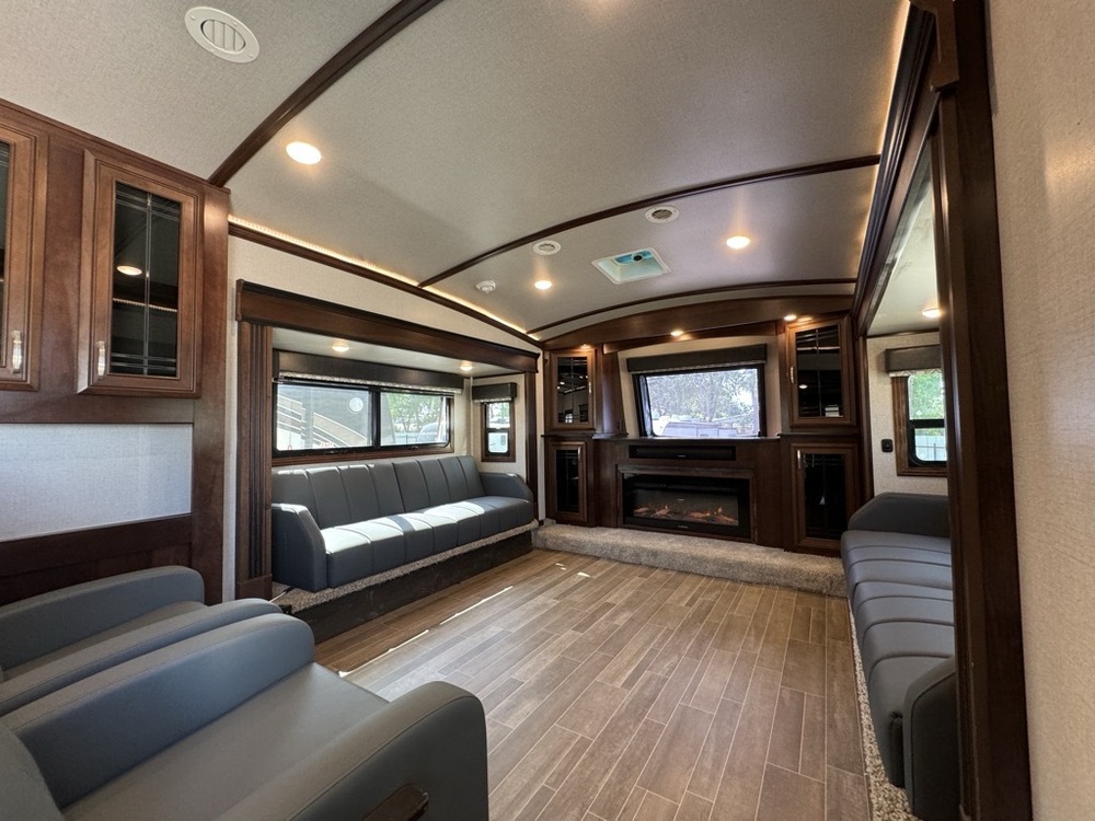 FREE SHIPPING! 2019 JAYCO PINNACLE M-38 FLWS has FRONT LIVING. 6 SLIDES. Length 42FT long with HIGH CEILINGS. BLACK-OUT SHADES. EXTENDABLE DINETTE TABLE for 4. LED & MASSAGE FEATURES ON RECLINERS SO YOU CAN KICK BACK AND RELAX. TV POWER LIFT IN ENTERTAINMENT AREA. MULTI MEDIA STEREO WITH DVD & BLUETOOTH CONNECTIVITY. 40 INCH FIREPLACE. SOLID HARDTOP THROUGHOUT THIS RV. SUPER NICE! POP-UP POWER TOWER ON KITCHEN ISLAND. LARGE RESIDENTIAL REFRIGERATOR. PRIVATE BEDROOM WITH BUILT IN DRESSER AND W/D HOOK UP. DOUBLE DOORS FOR CONVENIENCE. LARGE AWNING. MULTIPLE TV MOUNTS. MOTORIZED SUSPENSION for better handling. Lots Of Storage. 2 COLD A/C. Super Clean. GREAT QUALITY TRAILER. 14,235 UVW. 50AMP POWER. OUR PRICE $49,995. SEVERAL SUPER NICE RVS TO CHOOSE FROM. We are located in Mansfield TX on Business 287. We show Rv's 7 Days A Week BY APPOINTMENT. Call BRET 817*805*0067 or AMY 817*658*4633 FREE DELIVERY AVAILABLE TO ALL 48 STATES. WE INSPECT & GO THROUGH ALL TRAILERS TO ENSURE OUR CUSTOMERS ARE 100% SATISFIED.