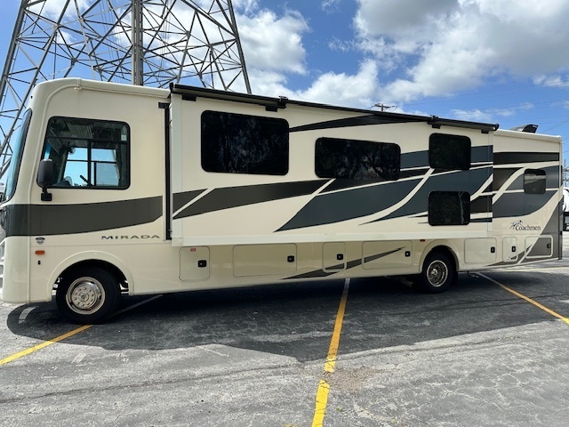 On the road, the Coachmen Mirada 35ES offers a smooth and comfortable ride thanks to its powerful engine and state-of-the-art suspension system with plenty of storage space both inside and out, you'll have room for all your gear and equipment.