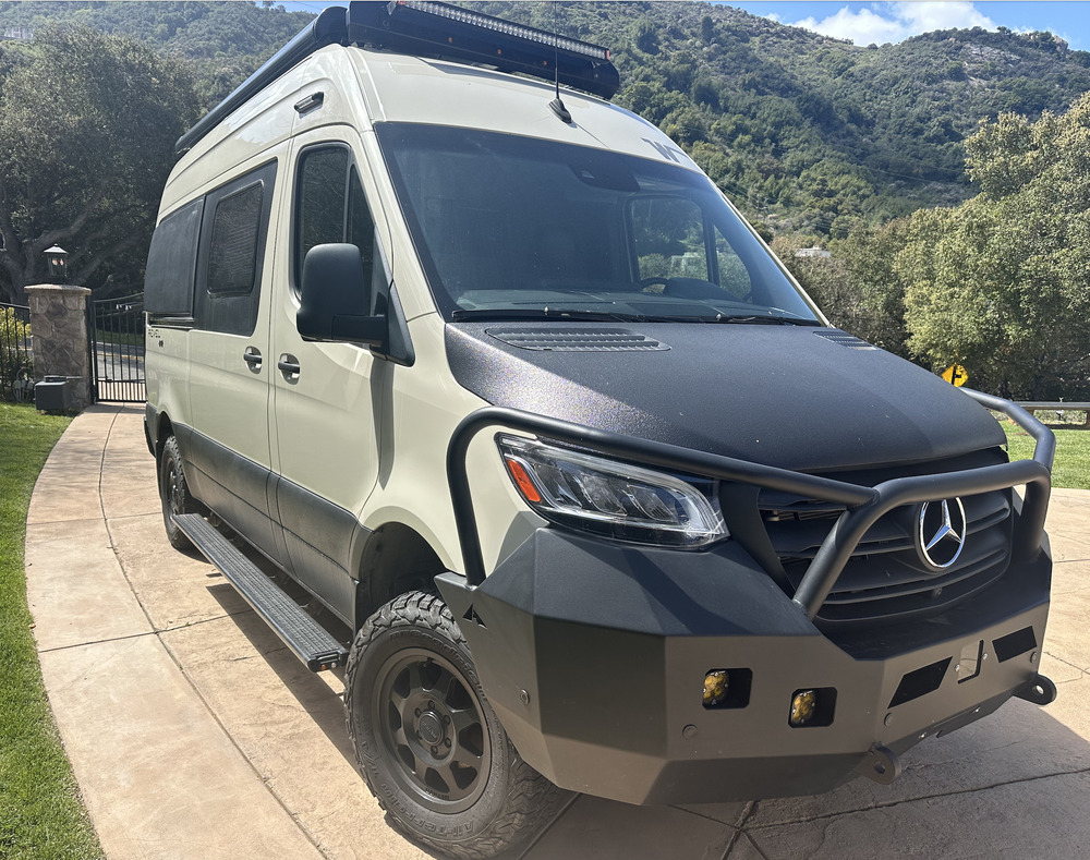EXTRAS: Front LED light bar, owl van carpet kit, owl van shower molle panel, internet on the go, owl van 50in light bar, two expedition storage boxes, B2 Bike carrier & two 1up bike trays, owl vans explorer side ladder,surf pole & J hooks,on board air compressor,pedal control 2.0 for sprinter,ladder and tire carrier,and finally Sprinter scout front bumper (bull bar) winch ready brackets, plus rear heavy duty steel bumper. Over 25k of extras in total!