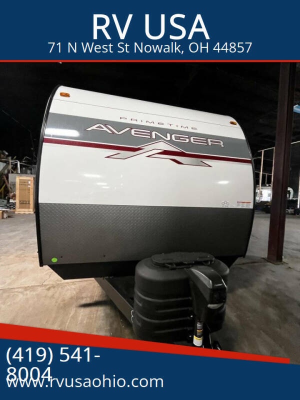 Experience comfort and convenience with the Prime Time RV Avenger travel trailer! The kitchen features a three-burner cooktop, 17" oven, and electric microwave, plus an outdoor kitchen for cooking in the fresh air.