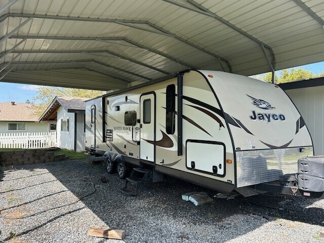 Top of the line JAYCO White Hawk Summit edition 28' travel trailer with super slide. superbly taken care of and stored under cover when not in use. perfect for family. Sleeps 7-10. 2 full size bunks, convertible dinette and love seat. separate master bedroom with rotating panel mirror/27in TV w sat, cable & ant. Stereo/DVD player w Bluetooth, USB input, interior/exterior speakers. LED light interior and exterior. Oven , stove, Microwave, refrig, freezer. Bathroom has separate entrance, shower tub, sink toilet. External bonus frig and bumper grill included. 4 leveling jacks, and 1 electric tongue jack. Lots of storage inside and out. Dual 5 gal propane. 12V batteries.