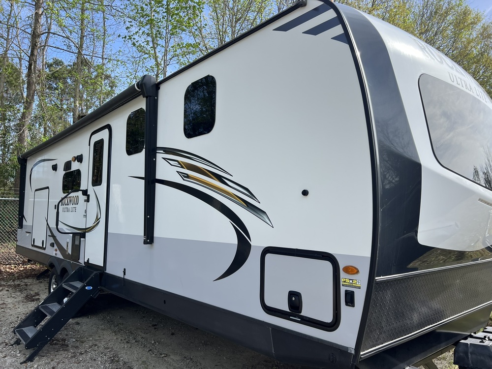 The complete package! Top-of-the-line 2021 Forest River Rockwood Ultra Lite 2912BS travel trailer is the perfect choice for your awaiting adventures. This model is known for its sleek design, quality construction aluminum frame, and many luxury features. With less than 1500 miles on the odometer, this trailer is practically brand new and ready to hit the road for your near or distant destinations.