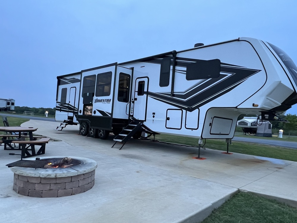 Bought brand new. Added 3 100ah Battleborn lithium batteries, Truma instant hot water heater, MORryde hitch pin, keyless touch pad. This is one of the first new interior colors that came out and is actually a MSR (all residential appliances). Pretty much everything that you can get on it. The 15 ft garage will fit almost any type of toy.