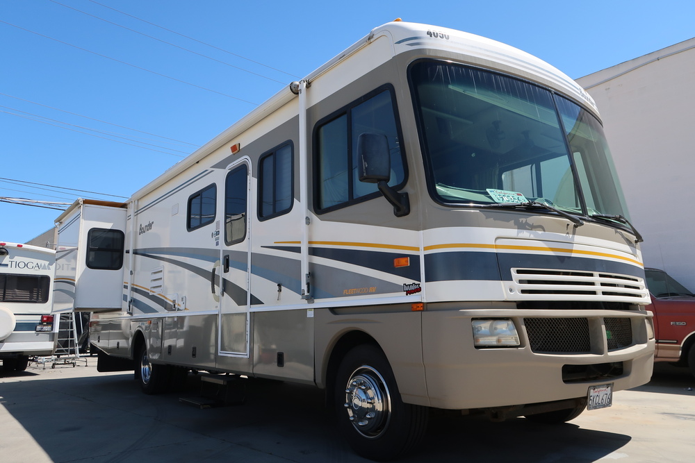 2004 Fleetwood Bounder 32W w/ 51k miles. This is a fantastic RV in great condition for those looking for a budget! It's a well-maintained RV with nice upgrades.... All new tires, Bilstein shocks, Banks air intake and exhaust for added performance, Workhorse Chassis with the Chevy 8.1 L V8 w/ the Allison transmission, 2 slide outs, 2 roof AC's, Onan 500 generator, full kitchen with cooktop, large refrigerator, oven and Corian countertops. The sofa folds into a jackknife bed and the booth dinette also converts into a bed. The rear private bedroom features a walk-around queen size bed, with lots of closet and storage space. There is a split bathroom that features a large shower and eclosed toilet, sink, and vanity. This is RV has a whopping 100 gal of freshwater capacity, vacuum-bonded sidewalls, a backup camera, full Banks Performance engine air intake and exhaust system for added performance, a manual awning, a automatic levelling system and so much more...
