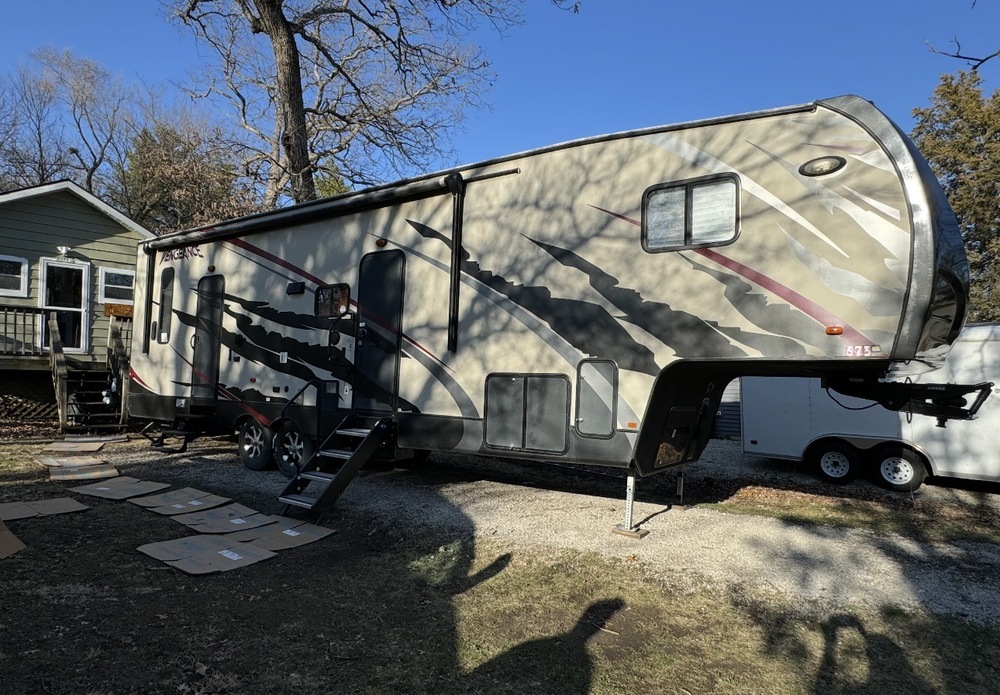 2013 Forest River Vengeance toy hauler, 10ft garage very clean.36 1/2 ft, air ride hitch,2in rear hitch,Blue tooth rear view camera system ,Heavy duty fold out stairs, new tires, full size elongated porcelain toilet, residential fridge with ice maker, new wall hugger recliners, Three tv's, surround sound, high power amp sony face off sterio system in garage with Bose outdoor speakers and tv docking