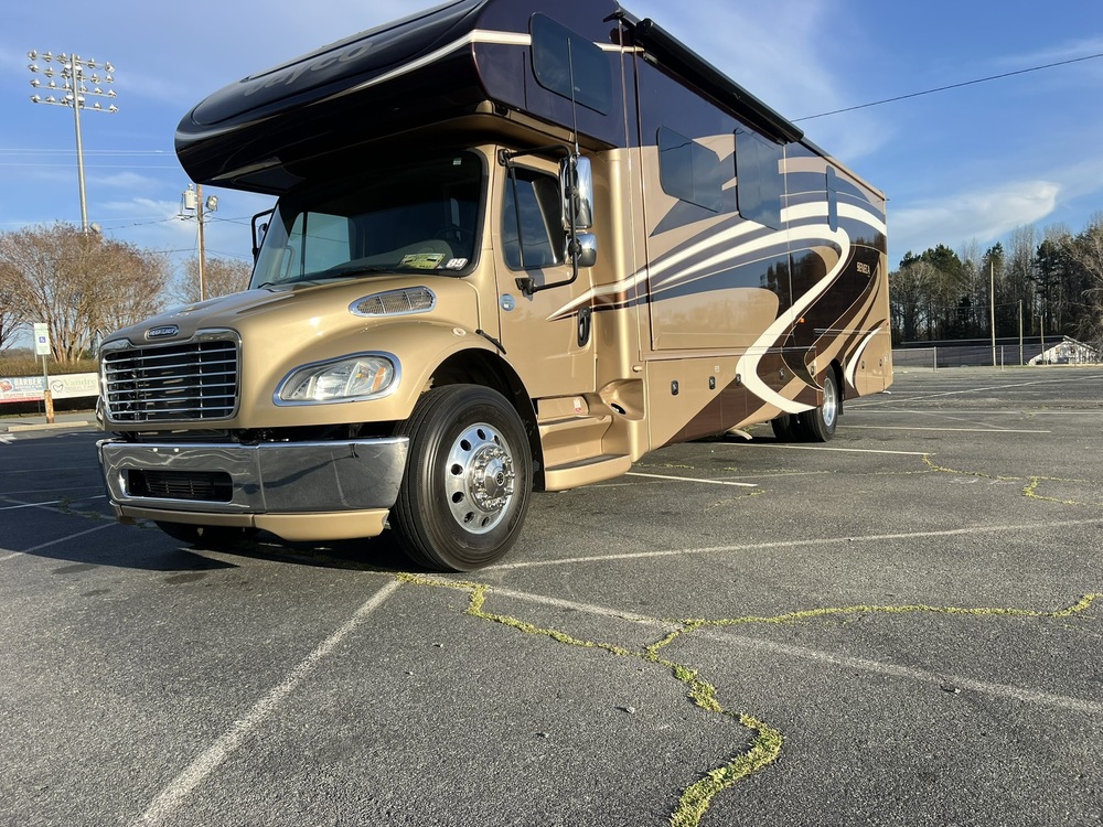 2016 Jayco Seneca FS Bunk House Model. Super C Diesel. 44,000 miles. Spacious inside layout with two slides. Sleeps up to 8 people with king size bed in private rear bedroom, double twin bunks each with additional memory foam mattress topper, pull out full sofa in living room, and powered double recliners in living room. There is extra storage located over cab behind TV. Kitchen is equipped with refrigerator, microwave, and electric stove top. A full bath in hallway with shower, sink, and newly installed taller toilet. Ceramic coated exterior paint, powered awning replaced 2023 along with slide toppers. New Ac 2023. Batteries replaced in 2024. Please text only 336-675-1964 for additional info for additional photos.