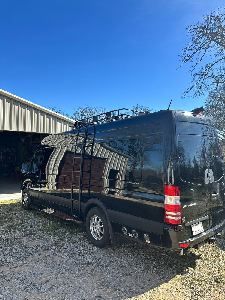 Garage kept. Only 31,000 miles. 177 wheel base 3500 Mercedes diesel with bathroom, refrigerator / freezer, sink, microwave, satellite TV, DVD , Maybach massaging / reclining seats throughout, folding bed, onboard WiFi hotspot, ladder / luggage rack, 2 receiver hitch, backup cameras, anti-sway bar, bumper guard, fog lights, off-road LED light bar.