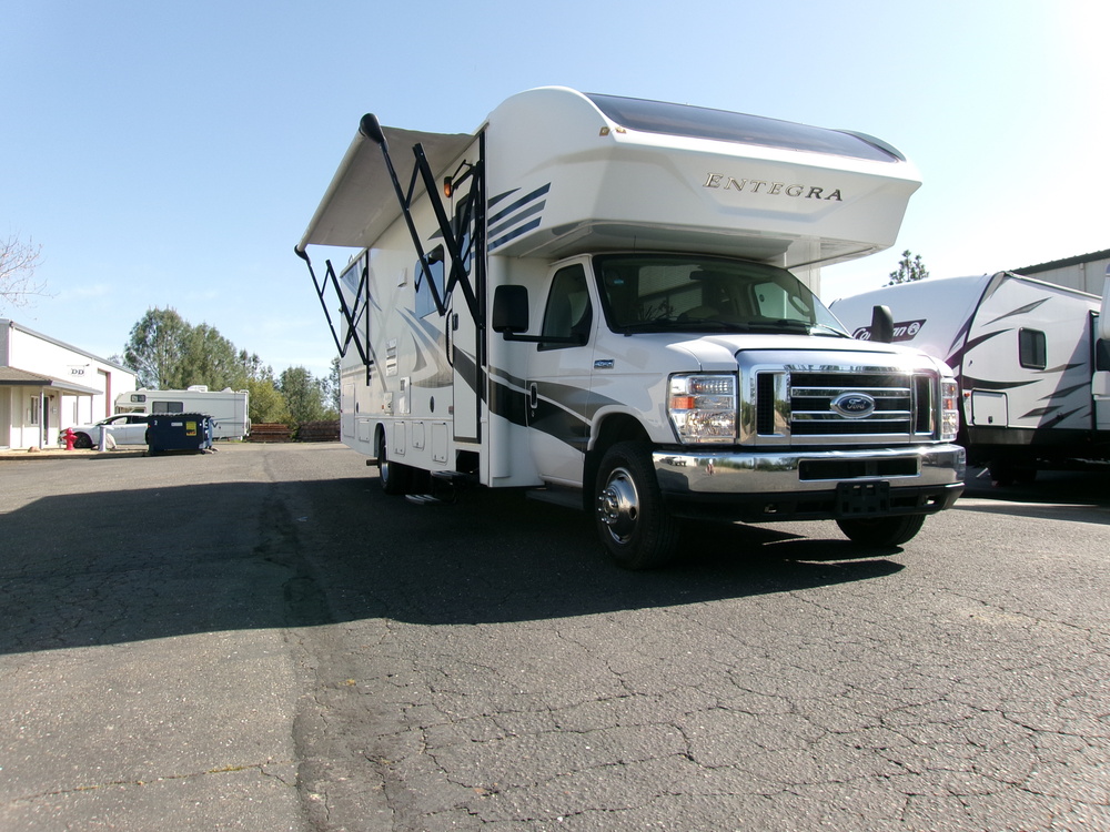 THIS 2018 ENTEGRA ODYSEEY 29V CLASS C MOTORHOME IS IN VERY GOOD CONDITION WITH A VERY SPACIOUS LAYOUT!! THE ODYSEEY IS EQUIPPED WITH 2 SLIDES, FRAMELESS WINDOWS, WALK AROUND QUEEN BED, QUEEN BED OVER DRIVER/PASSENGER, LOVESEAT WITH RECLINERS, DINNING BOOTH, 67K MILES, 4000 WATT GENERATOR, SOLAR PREP, 1,000 INVERTER, BACKUP CAMERA, TV, TRITON V10 WITH THE E450 FORD ENGINE, TOW PACKAGE, AND MUCH MORE!!