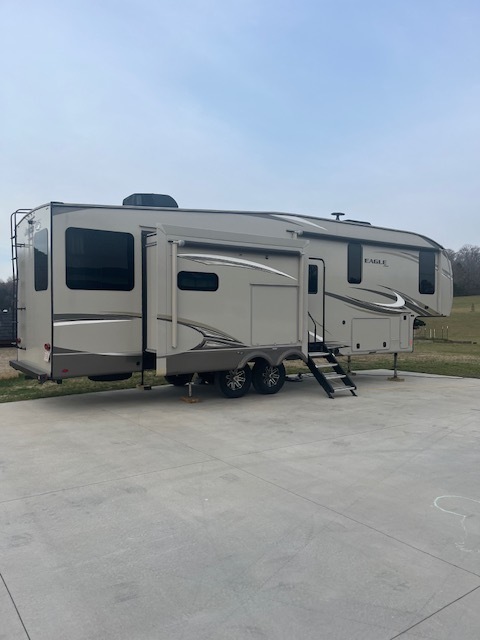 We have a 2019 Jayco Eagle 319MLOK for sale. Everything works perfectly! Has full size fridge/freezer, washer/dryer hookup, fireplace, auto leveling, outdoor kitchen, pullout sofa, two recliners, two tvs, plenty of storage, and so much more! Clean title in hand, we love this camper, we just need a different floor plan for our grandkids. For more information give us a call 980-721-4089 or 704-400-8053 (we have the original window treatments table/chairs and all if you want those)
